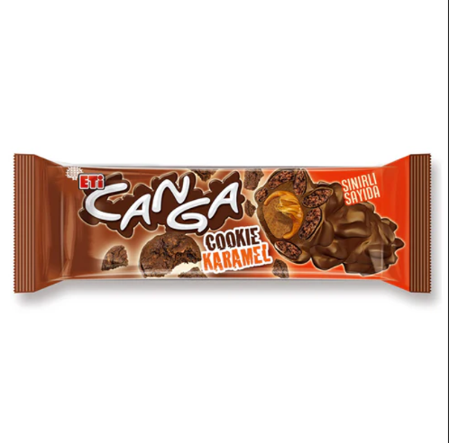 De Eti Canga Cookie Karamel is een heerlijke chocoladereep gevuld met krokante koekjesstukjes en smeuïge karamel. De buitenkant is bedekt met romige melkchocolade, terwijl de binnenkant bestaat uit knapperige cookie-bites en een zachte karamelvulling die voor een rijke smaakervaring zorgt.